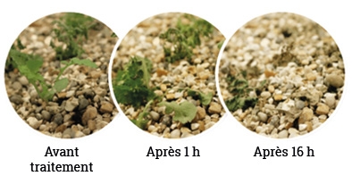 Il existe enfin des désherbants spécialisés pour ces zones, à appliquer en pulvérisation et à base d'actifs d'origine naturelle agissant pour certains en 1h à 3h.