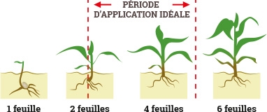 • Les mauvaises herbes ne doivent pas avoir dépassé le stade 4 à 5 feuilles (avant les bourgeons floraux).