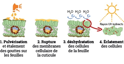 • La température extérieure doit être de 15°C minimum et la pulvérisation sur les plantes-cibles doit être régulière et bien homogène. Plus le temps est propice aux rayons UV plus les effets visibles seront rapides. Bien évidemment l'application soit s'effectuer par temps sec.